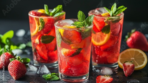 juice, ice, cocktail, glasses, drink, alcohol, strawberry, soda, red, freshness, lemonade, summer, bar, cool, refreshment, liquid, slice, mint, sangria, cold, mojito, beverage, pink, lemon, liqueur, glacé, still life, ingredient, garnish, citrous, gin, fruit, closeup, blended, healthy, colours, alcoholic, rum, shadow, closeup, sirup, spearmint, fresh, leaf, brightly, herb, aperitif, sweet