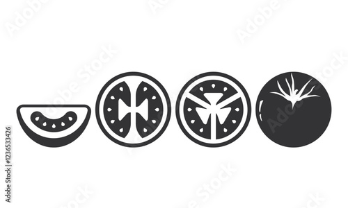 vector, tomatoes, icon, vegetable, isolated, flat, symbol, food, design, silhouette, plant, black, simple, clean, clip art, slice, shape, healthy, fresh, illustration, vegetarian, freshness, vegan, salad, health, health food, fresh vegetable, organic, nature, ingredient, agriculture, set, white, nourishment, leaf, collection, graphic, raw, half, cook, ripe, delicious, natural