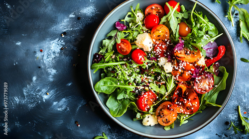 Fresh vegetable salad with tomatoes, lettuce, and onions in a bowl