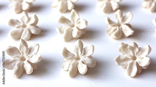 fresh, white, jasmine, bloom, captured, soft, natural, lighting, their, delicate, flower petals, gentle, beauty, against, light, neutral, background