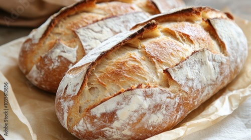 bread, baked, loaf, rustic, food, bakery, pastry, fresh, gold, brown, crust, dough, flour, wheat, yeast, delicious, appetising, homemade, organic, artisan, baking, kitchen, culinary, meal, snack, dinner, breakfast, lunch, epicure, table, surface, paper, white, close, up, still, life, photo, natural, texture, grain, crumb