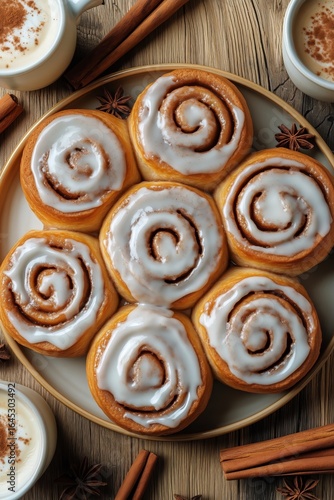 cinnamon, baked, good, dessert, hot drink, wooden, platter, icing, breakfast, spice, cosy, warm, homemade, sweet, pastry, holiday, tea, stick, snack, indulgence, food, sharing, treat, delicious, morning, kitchen, rustic, favor, presentation, comfort, decoration
