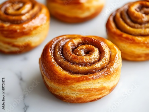 Freshly Baked Cinnamon Rolls with Glaze on Marble Surface CloseUp Shot