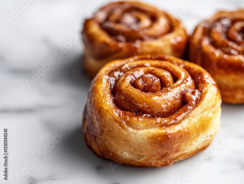 Freshly baked cinnamon rolls with golden brown crust and sweet glaze