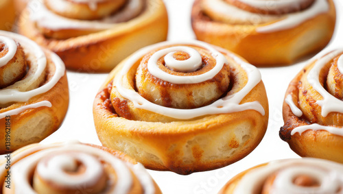 bun, pastry, baked, fresh, delicious, sweet, frosting, icing, glaze, cream cheese, white, background, closeup, topview, overhead, homemade, warm, swirl, spiral, breakfast, brunch, dessert, treat, food, bread, bakery, gold, brown, several, multiple, single, object, isolated, epicure, tasty, rich, indulgence, snack, morning, hot drink, tea, ready to eat