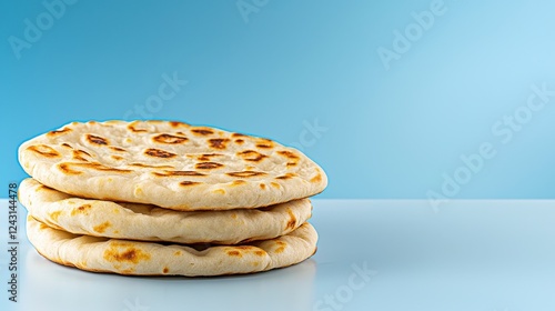 Freshly Baked Flatbreads Stacked on a Light Blue Background