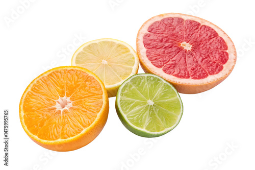 Freshly cut citrus fruits assortment isolated on a black background for healthy eating.