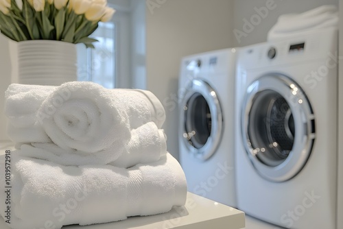 Freshly Laundered Towels in a Modern Laundry Room