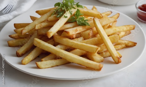Freshly Made French Fries Presented on a Simple White Background, Generative Ai