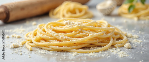Freshly Made Pasta on Marble Countertop with Parmesan Garnish