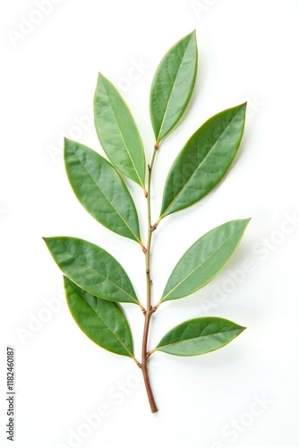 Freshly plucked olive branch leaves isolated on white background, leafy branches, nature photography, garden elements