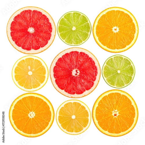 citrous, fruit, slice, orange, lemon, lime, grapefruit, healthy, food, fresh, colourful, vibrant, isolated, background, nourishment, juicy, natural, raw, delicious, cut, whole, circle, pattern, bright, composition, square, arrangement, assorted, closeup, tropical, sweet, sour, macro, detail, vitamin, edible, segment, black, epicure, design, ripe, diet, texture, element, top, view, product, organic