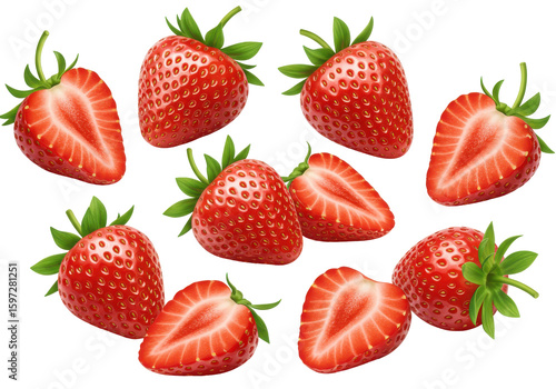 Freshly sliced strawberries arranged beautifully on a white background, ideal for culinary use
