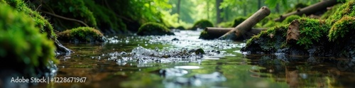 Freshwater spring bubbling up through forest floor water source, trees, freshwater, fresh