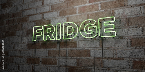 FRIDGE - Glowing Neon Sign on stonework wall - 3D rendered royalty free stock illustration. Can be used for online banner ads and direct mailers..