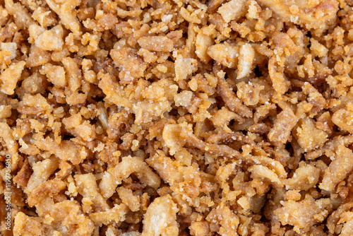 Fried dried onion, close-up. a popular snack food, garnish.