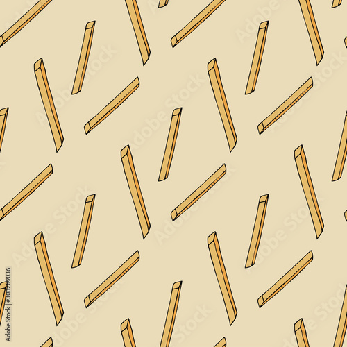 Fried potatoes. Seamless pattern. hand drawn vector illustration. french fries. doodles or cartoon style.