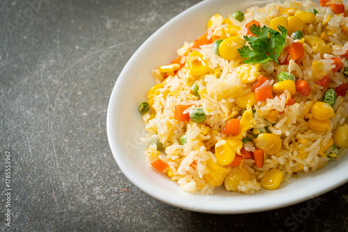 fried rice with mixed vegetable (carrot, green bean peas, corn) and egg