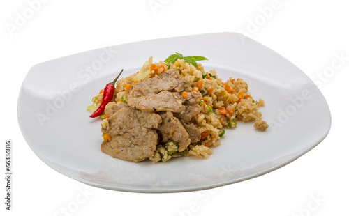 rice, fried, food, chinese, cookery, asian, pork meat, vegetable, meal, dinner, meat, eatery, green, healthy, dish, cooked, onion, nourishment, plate, lunch, spice, white, curry, red, brown, pea, closeup, spicey, delicious, asia, eat, epicure, cooking, china, background, delicacy, pea