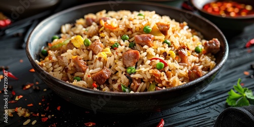 fried, rice, pork meat, chinese, culinary, tradition, asian, food, cookery, dish, meal, cooking, wok, receipe, vegetable, soy, sauce, chicken, noodle, beef, spice, garlic, onion, green, pea, carrot, bell, pepper, sesame, oil, herb, favor, stir fry, tasty, delicious, savoury, hot, spicey, street, take-out, eatery, epicure, comfort