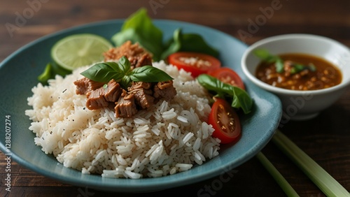 food, rice, meal, dinner, vegetable, plate, fried, chicken, salad, meat, pork meat, vegetable, cookery, dish, lunch, white, thai, risotto, healthy, bowl, green, red, onion, delicious, vegetarian