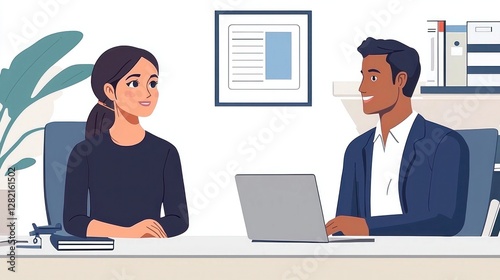 office, meeting, professional, communication, teamwork, collaboration, technology, discussion, cheerful, business attire, interaction, workspace, screen, laptop, focused, diverse, planning, idea, partnership, productivity, creative, friendly, consultation, modern, digital, presentation, design, brainstorming, girl, boy, conversation, smiling, confident, hr, learning, strategy, workplace, connection, engagement, corporate, approach, adviser, human relationships, exchange, networking, success