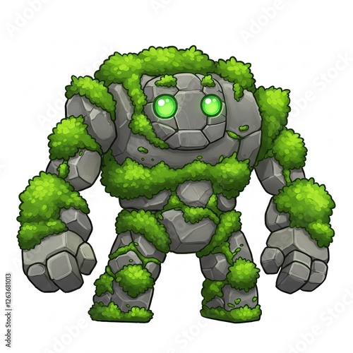 rock, stone, moss, nature, guardian, cartoon, cute, animated, magic, mystical, fantasy, creature, friendly, glowing, ancient, forest, boulder, elemental, guardian, smiling, cheerful, plant, green, enchanted, titan, colossus, spirit, mythical, legend, eye, character, soft, energy, bright, charming, earth, peaceful, monster, earthy, being, magical, cartoonish, happy, warm, kind