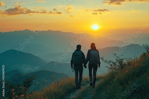 Friends hiking to a remote mountain location ultra-realistic photo. Beautiful simple AI generated image