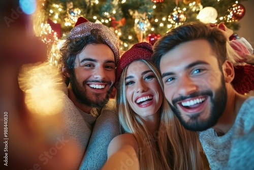 friends, selfie, christmas, tree, holiday, celebration, smile, happy, festive, group, light, ornament, joy, together, party, family, fun, memory, decoration, seasonal, holiday, cosy, gathering, winter, sparkling, cheerful, indoor, posing, excitement, happiness, bonding, joyful, christmas, new year, laughter, people, couple, smiling, 2, beauty, person, friendship, children