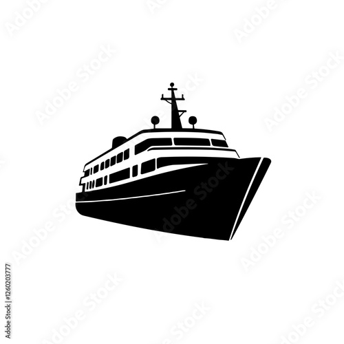 cruise, ship, front view, vector, illustration, silhouette, black-and-white, ocean, transportation, nautical, watercraft, maritime, adventure, vacation, holiday, voyage, sailing, modern, elegant, professional, journey, tour tourism, luxury, liner, emblem, branding, stylish, powerful, minimal, icon, graphic, wave, international, get-away, relaxation