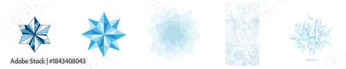 Frost Texture and Ice Crystal Shapes, winter theme. Vector, minimalist, illustration, icon set.