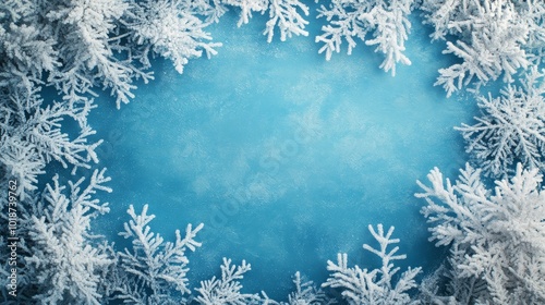Frosty Branches Forming a Circular Frame on a Blue Background