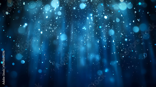 Frozen moment of water droplets mid-air, shimmering and clear, with a tranquil blue atmosphere, copy space. Shimmering Water Droplets. Illustration