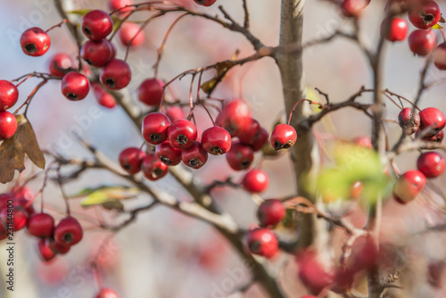autumn, shrub, red, berry, nature, tree, plant, twig, green, food, leaf, bush, winter, ripe, season, bough, twig, white, hawthorn, thorn, berry, fruit, fruit, field, age, small, heaven, blue, green