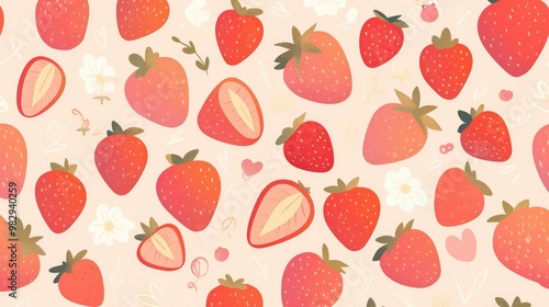 strawberry, fruit, pattern, illustration, charming, red, outline, white, pink, pastel, background, design, fabric, tile, wallpaper, print, cartoon, style, cute, decorative, summer, sweet, organic, nature, vibrant, colourful, fresh, artistic, tropical, healthy, food, ripe, produce, simple, playful, creative, trendy, textile, enclosed, decor, seamless, graphic, aesthetic, visual, delicious, summer