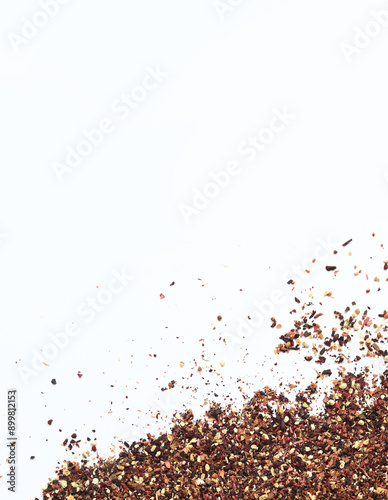 Fruit tea on a white background. Top view of tea made from apple, cinnamon, lemon zest, hibiscus flowers, licorice root and cloves