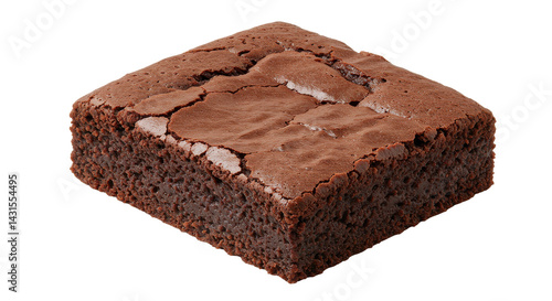 Fudgy, delicious brownie with crackled top. A perfect square, rich in dark chocolate