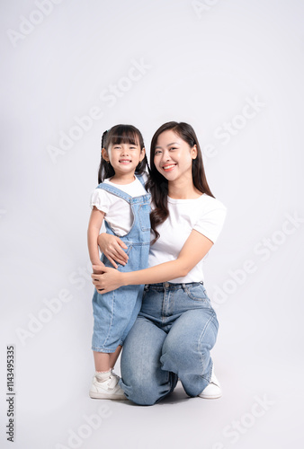 adorable, adult, advertisement, asian, background, beautiful, care, casual attire, cheerful, children, children, chinese, connection, cute, daughter, enjoy, excited, family, female, full body, girl, hand, happiness, happy, indonesian, isolated, japanese, joy, children, korean, lady, love, malaysian, mother, people, person, portrait, positive, showing, sitting, smile, studio, thai, together, vietnamese, white, woman