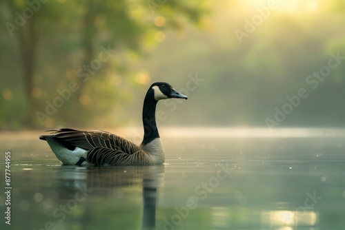 Full body view of Canada Goose swimming in lake natural habitat, full body shot, full body View