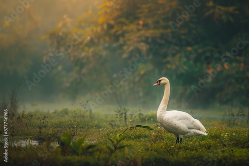Full body view of Whistling Swan in natural habitat, full body shot, full body View