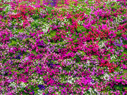 full decorated wall with the colorful fresh flowers