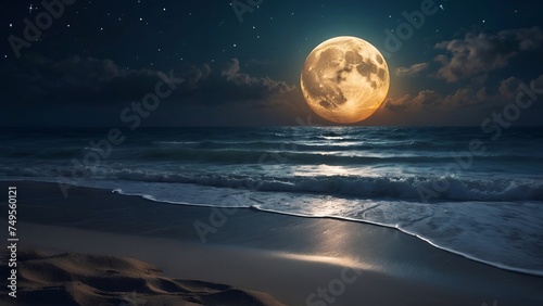 moon, night, sky, sea, water, ocean, full, moonlight, dark, blue, cloud, space, landscape, light, nature, beach, star, fantasy, star, horizon, full moon, evening, black, planet, cloud, wave, sun