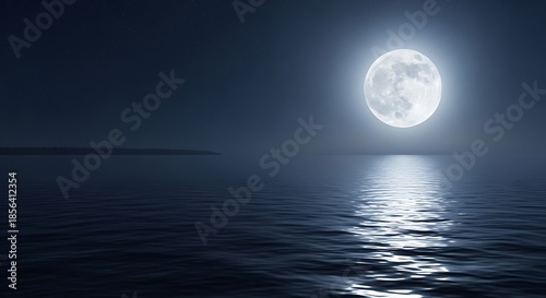 Full moon reflecting over calm water creating peaceful night scene