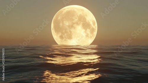 moon, ocean, sea, water, sunset, sunrise, night, full, large, big, sky, horizon, calm, tranquil, peaceful, serene, gold, yellow, light, wave, surface, dark, mystical, magical, romantic, dreamy, beautiful, nature, landscape, scenery, background, image, photo, picture, illustration, artwork, art, design, element, texture, vibrant, bright, glow, shine