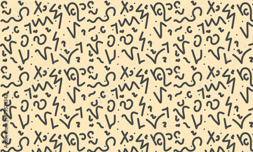 Fun black line doodle seamless pattern. Creative minimalist style art background for children or trendy design with basic shapes. Simple childish scribble backdrop.