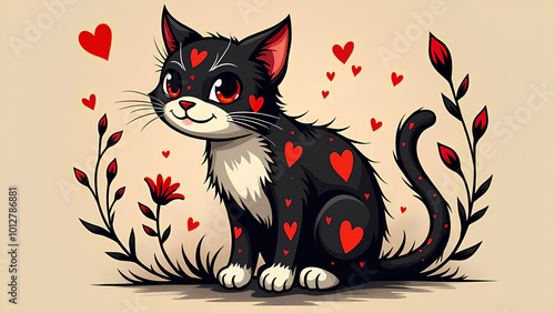 pet, humor, character, no people, black-and-white, vignetting, vertical, doodle, poster, felino, horizontal, kitten, happiness, fun, illustration, portrait, cartoon, art, cute, cheerful, animal, design, vector, beauty, decoration, domestic cat