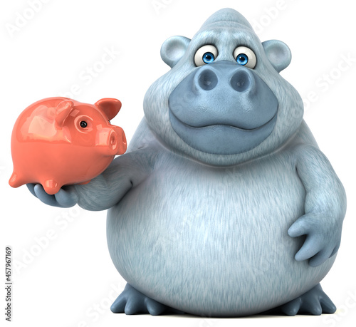 gorilla, monkey, chimpanzee, monkey, zoo, animal, animal, illustration, three-dimensional, funny, ape, wildlife, cartoon, mammal, white, beast, fat, overweight, diet, fur, primate, primal, nature, africa, african, yeti, albino, abominable, money box, money, finance, savings, business, economy