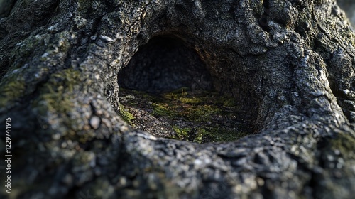 Fungi and Moss in a Tree Hollow with Detailed Description