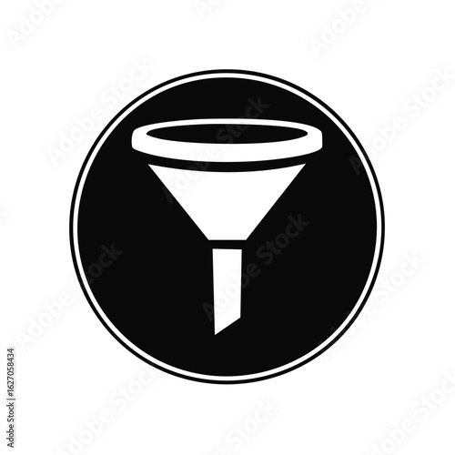 funnel, icon, symbol, illustration, vector, filter, liquid, solution, chemistry, laboratory, science, equipment, experiment, dripped, flow, circle, black, white, abstract, design, object, round, processing, filtration, chemical, pictogram, graphic, signs, graphic, clip art