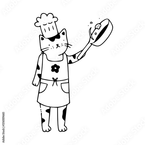 chef, cat, cut, funny, cooking, baking, kitchen, food, animal, pet, whimsical, character, apron, spoon, humor, design, drawing, art, clip art, pen, ink, cartoon, outline, silhouette, thing, line art, doodle, vignetting, scribble, vector, illustration, graphic, black-and-white, icon, hand-drawn, digital artwork, minimalist, graphic design, design element, isolated